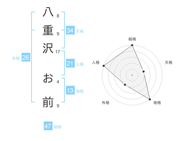 八重沢 お前さんを姓名の画数から五運を鑑定