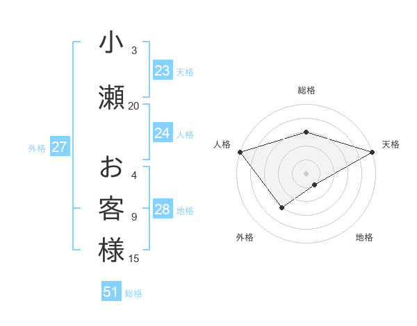 小瀬 お客様さんを姓名の画数から五運を鑑定