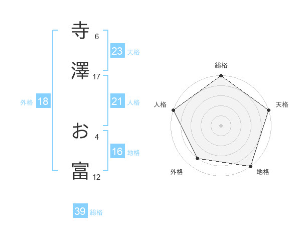 寺澤 お富さんの総格は39画の5点!