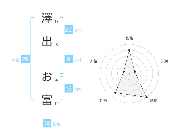 澤出 お富さんの総格は38画の4点!