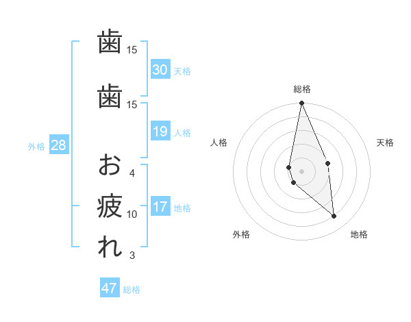 歯歯 お疲れさんの総格は47画の5点!