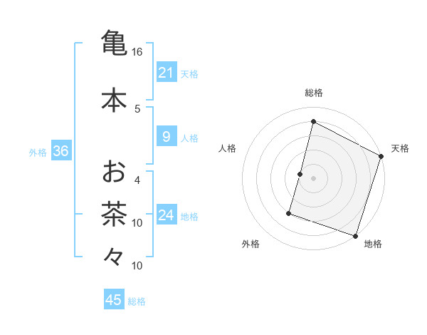 亀本 お茶々さんの総格は45画の4点!