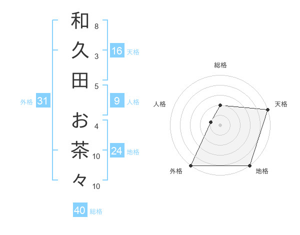 和久田 お茶々さんを姓名の画数から五運を鑑定