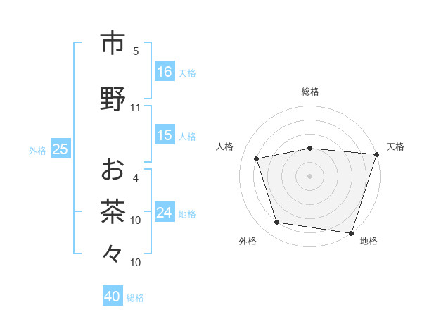 市野 お茶々さんを姓名の画数から五運を鑑定