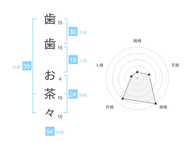 歯歯 お茶々さんの総格は54画の1点!