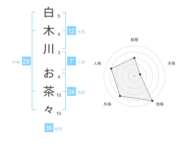 白木川 お茶々さんの地格は24画の5点!