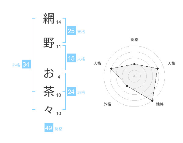 網野 お茶々さんを姓名の画数から五運を鑑定