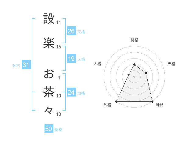 設楽 お茶々さんを姓名の画数から五運を鑑定