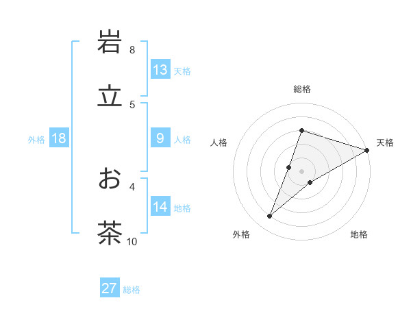 岩立 お茶さんを姓名の画数から五運を鑑定