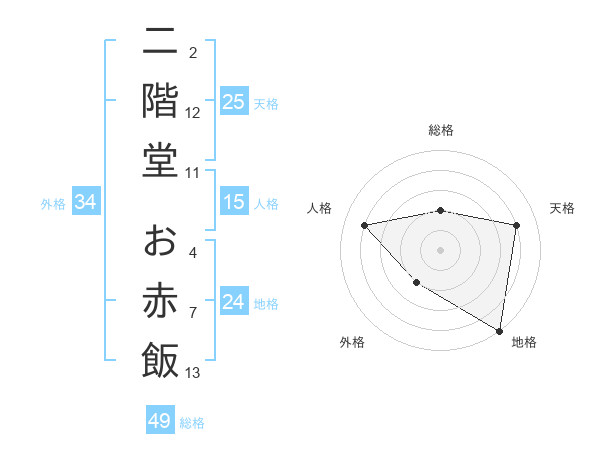 二階堂 お赤飯さんの天格は25画の4点!