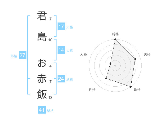 君島 お赤飯さんを姓名の画数から五運を鑑定