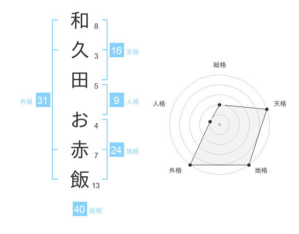 和久田 お赤飯さんを姓名の画数から五運を鑑定