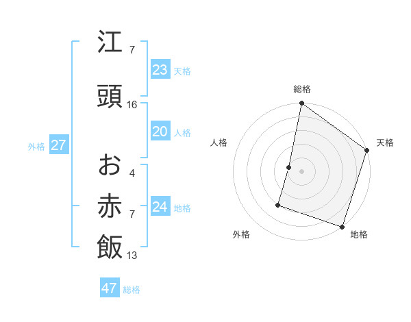 江頭 お赤飯さんの総格は47画の5点!