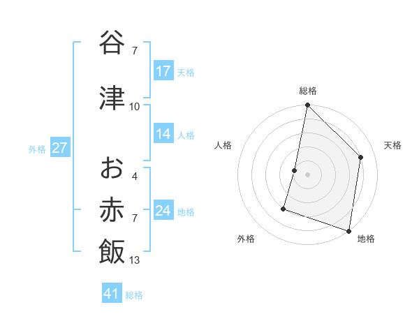 谷津 お赤飯さんの総格は41画の5点!