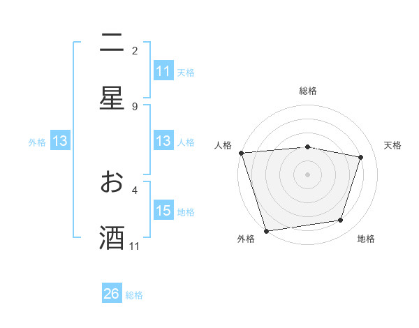 二星 お酒さんの総格は26画の2点!