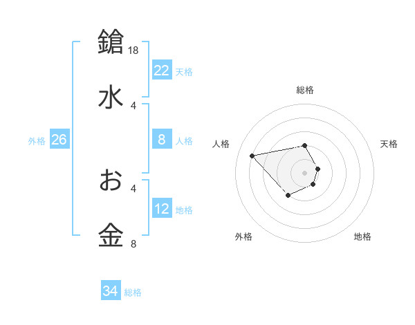 鎗水 お金さんの総格は34画の2点!