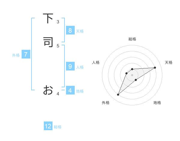 下司 おさんの総格は12画の1点!