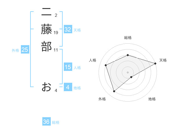 二藤部 おさんの総格は36画の3点!
