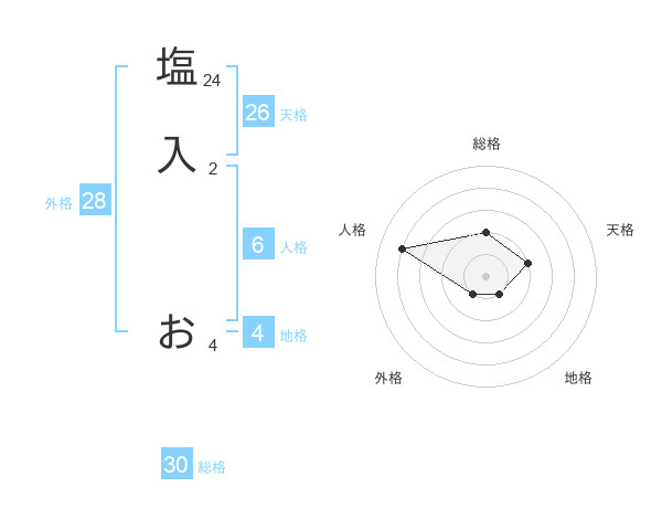 塩入 おさんの総格は30画の2点!