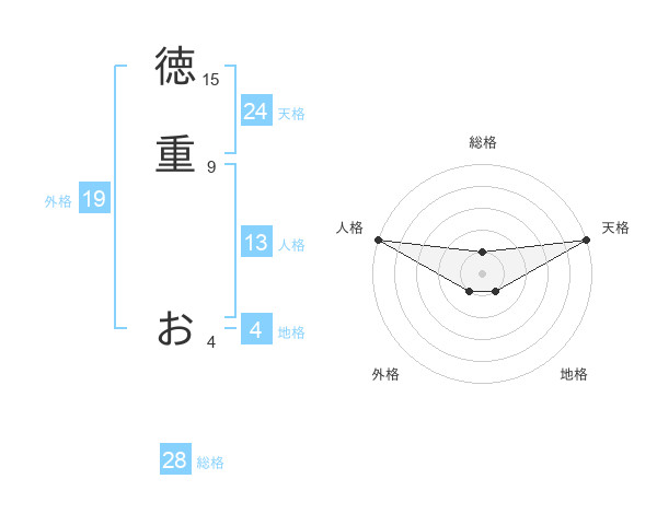 徳重 おさんの天格は24画の5点!