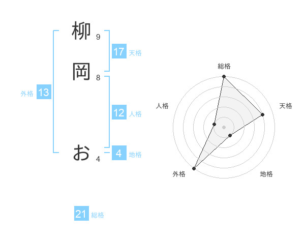 柳岡 おさんの天格は17画の4点!