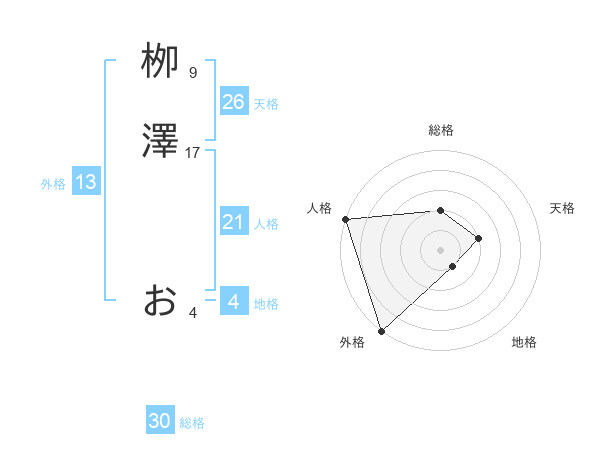 栁澤 おさんの外格は13画の5点!