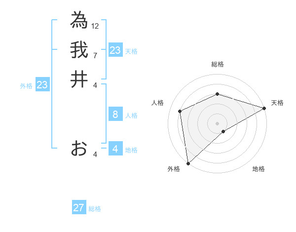 家系が持つ宿命的な運勢を表します。祖先から受け継いだ苗字ですので自分の力が及びません。家柄を象徴します。