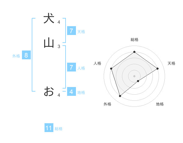 犬山 おさんの外格は8画の4点!