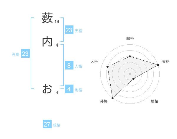 薮内 おさんの外格は23画の5点!