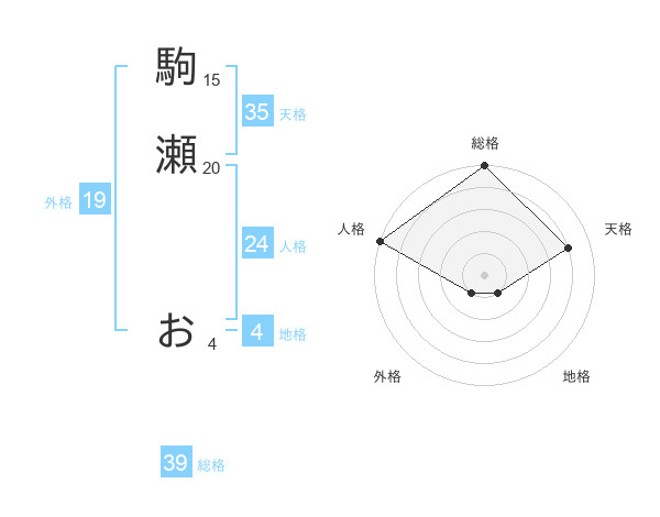 駒瀬 おさんを姓名の画数から五運を鑑定