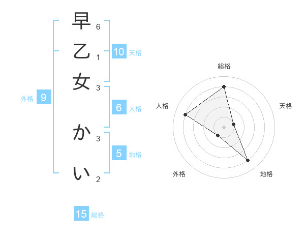 早乙女 かいさんを姓名の画数から五運を鑑定