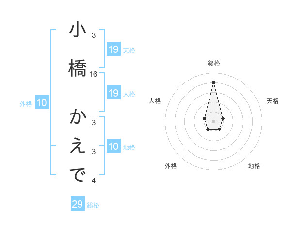 小橋 かえでさんを姓名の画数から五運を鑑定