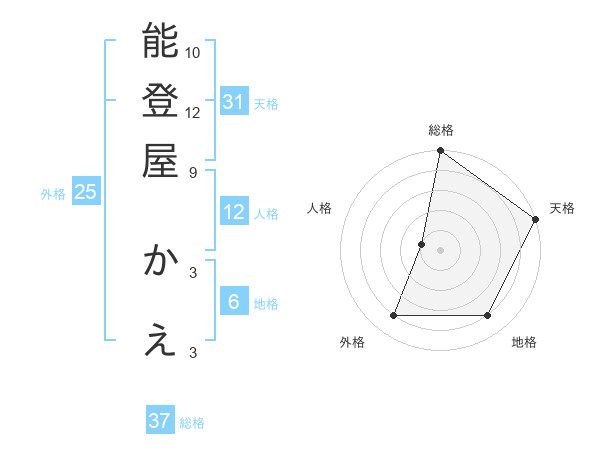 能登屋 かえさんを姓名の画数から五運を鑑定