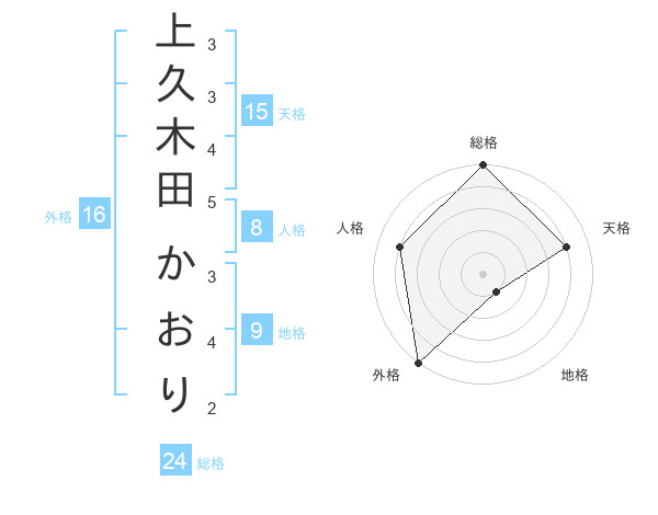 上久木田 かおりさんの天格は15画の4点!
