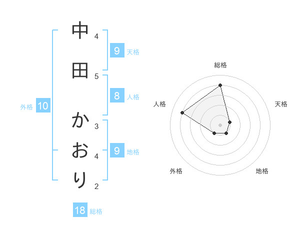 中田 かおりさんの天格は9画の1点!