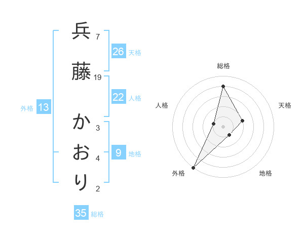 兵藤 かおりさんを姓名の画数から五運を鑑定