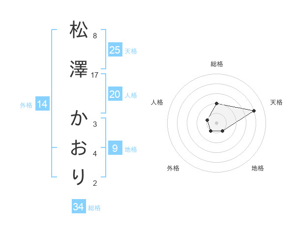 松澤 かおりさんの総格は34画の2点!