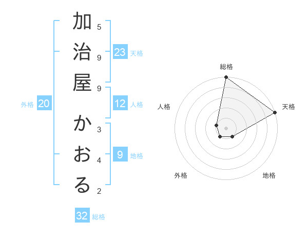 加治屋 かおるさんを姓名の画数から五運を鑑定