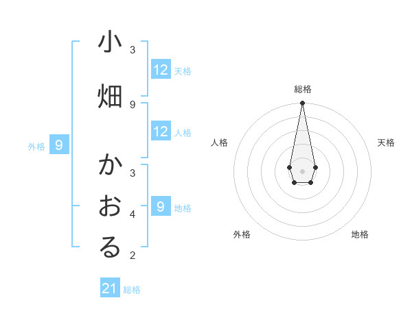 小畑 かおるさんを姓名の画数から五運を鑑定