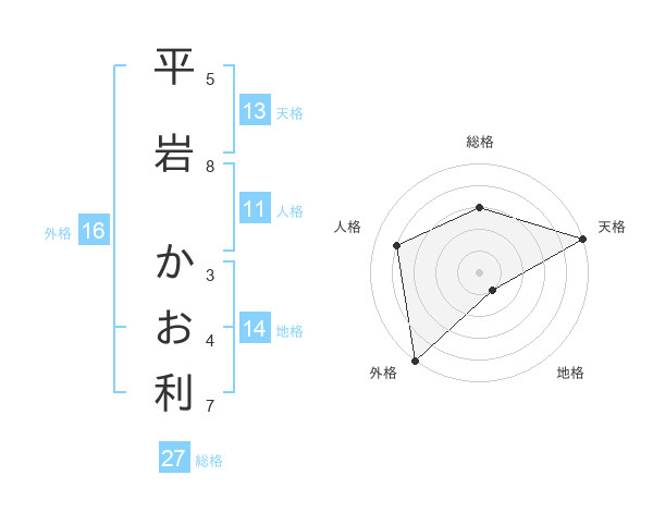 平岩 かお利さんを姓名の画数から五運を鑑定