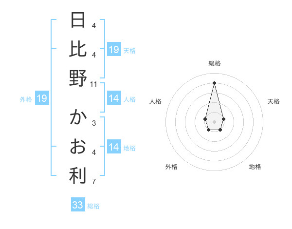 日比野 かお利さんの地格は14画の1点