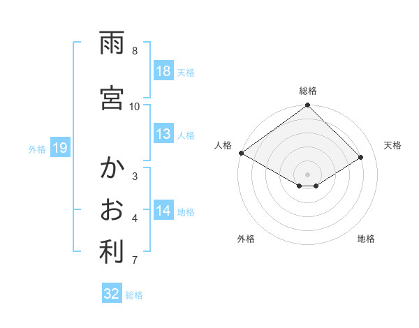 雨宮 かお利さんを姓名の画数から五運を鑑定