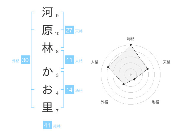 河原林 かお里さんを姓名の画数から五運を鑑定