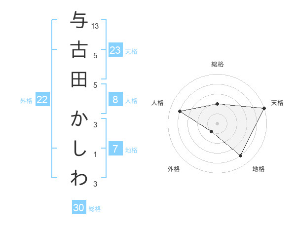 与古田 かしわさんを姓名の画数から五運を鑑定