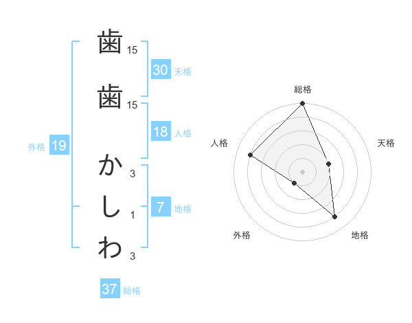 歯歯 かしわさんを姓名の画数から五運を鑑定