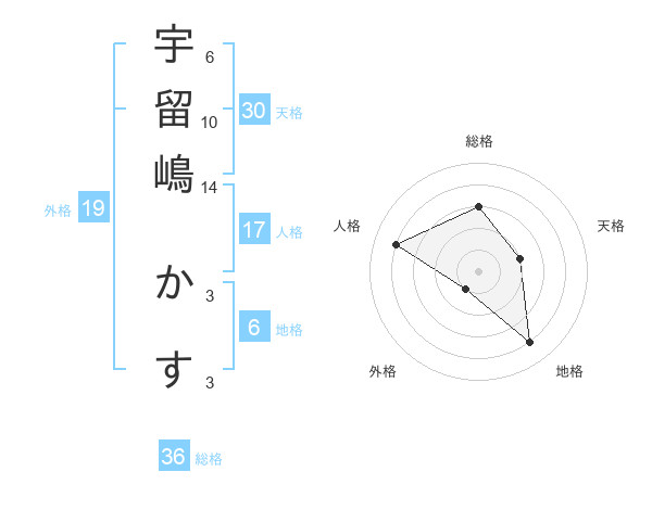 宇留嶋 かすさんを姓名の画数から五運を鑑定