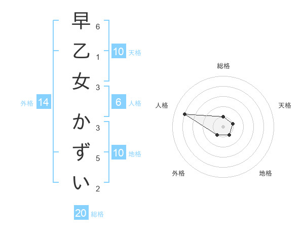早乙女 かずいさんを姓名の画数から五運を鑑定