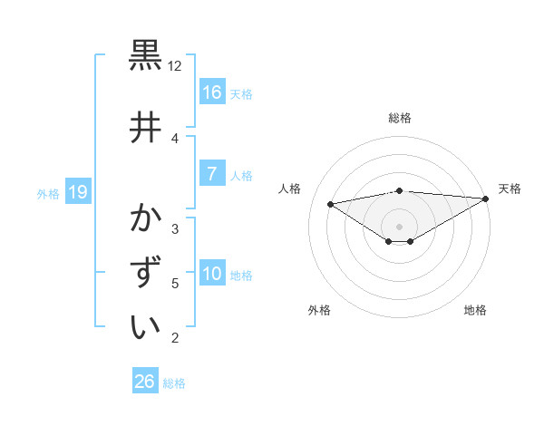 黒井 かずいさんを姓名の画数から五運を鑑定