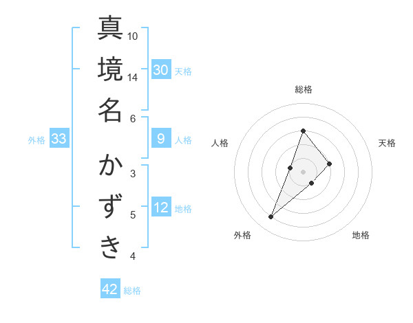 真境名 かずきさんの外格は33画の4点!