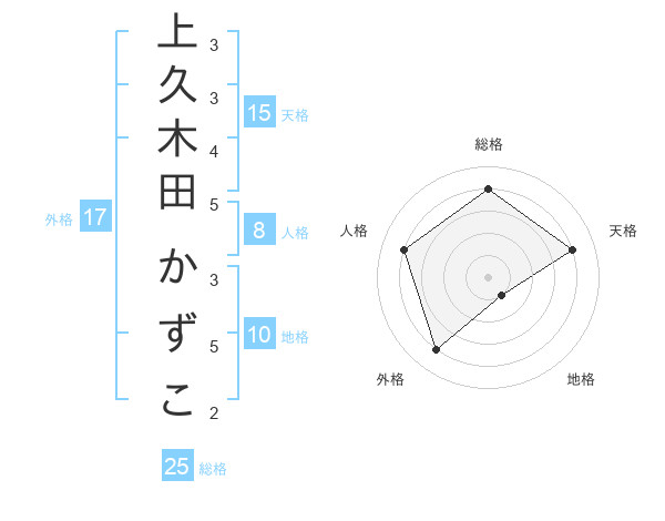 上久木田 かずこさんを姓名の画数から五運を鑑定